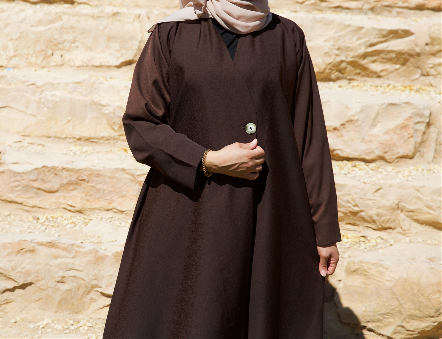 UNIQUE DESIGN: The perfect elegant and practical abaya. Designed with a flattering a-line cut and a blazer look. The button crosses the abaya over to ensure it remains closed for ultimate comfort and coverage all while keeping the abaya's beautiful flow and shape.