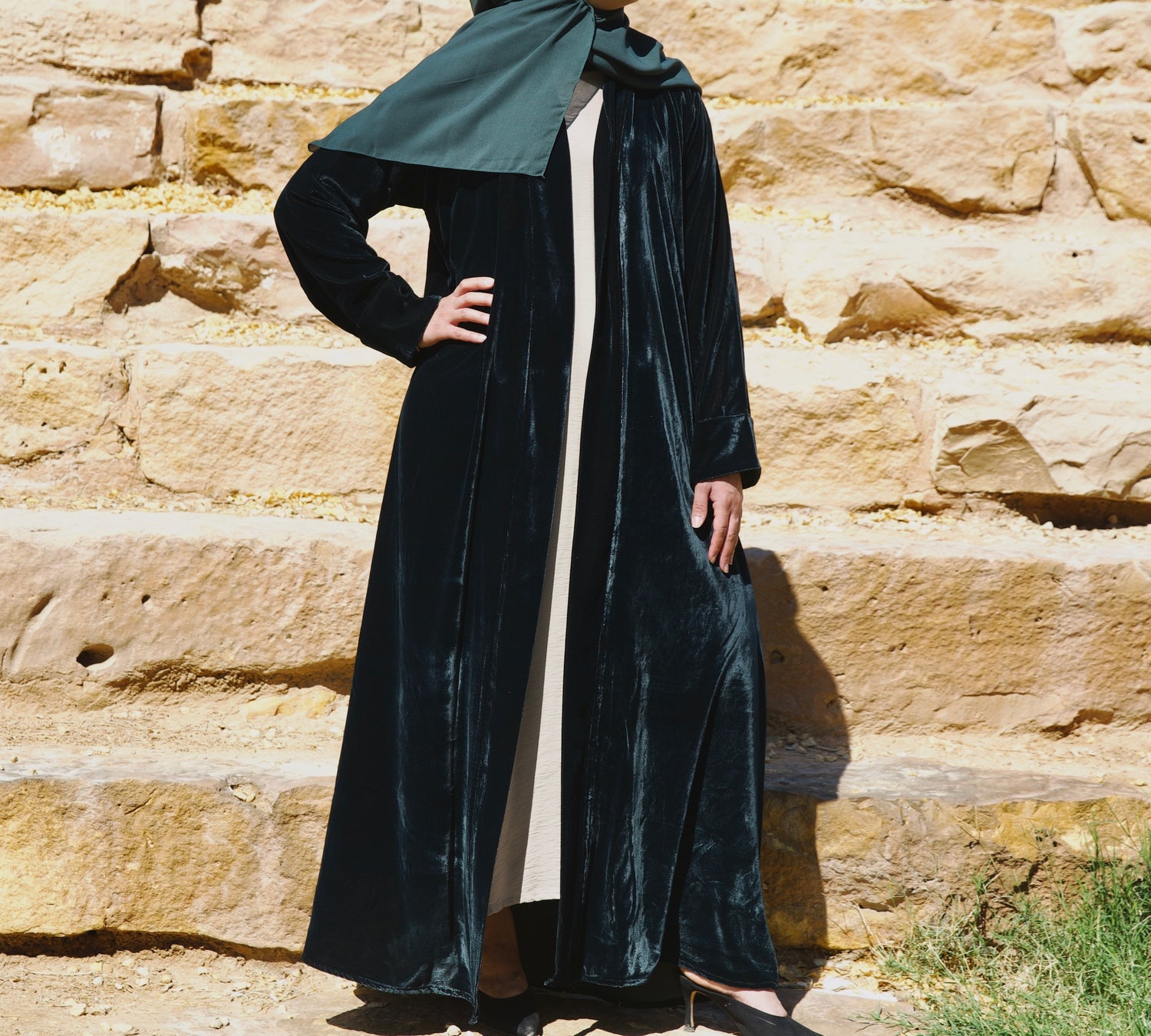 UNIQUE DESIGN: Deep teal and velvet will undoubtably make you feel and look elevated this winter. Feel cozy and warm in the breathable luminous velvet fabric. With an a-line cut and flowy fabric, this abaya looks phenomenal on everyone.